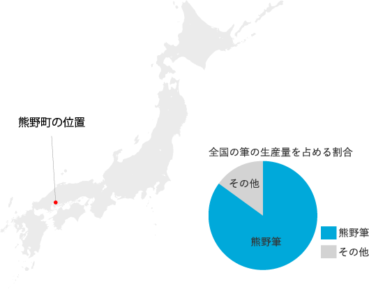 18世紀末(江戸時代末期)ごろ、平地の少ない熊野村では、農業だけでは生活が苦しいため、農閑期を利用して、奈良地方から筆や墨を仕入れ、それを売りさばいていたことが、きっかけとなり、筆と熊野の結びつきが生まれました。